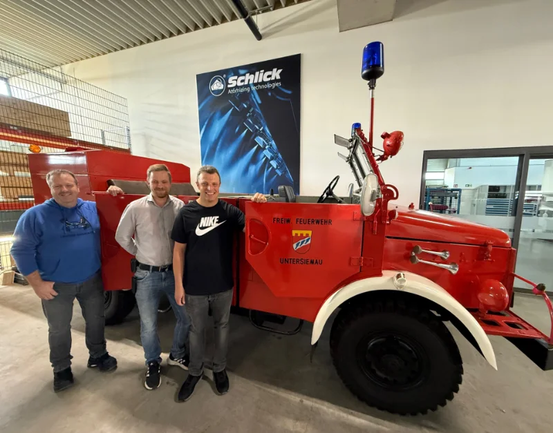 Im Mai diesen Jahres übernahm Düsen-Schlick in Untersiemau, das historische Tragkraftspritzenfahrzeug (TSF) der örtlichen Feuerwehr zur Restauration und zur weiteren Betreuung. Bei schönem Wetter ist das gute Stück auch beim Untersiemauer Oldtimertreffen ausgestellt.