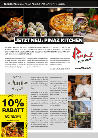 Anfang November war es dann so- weit und die ersten Bestellungen im, aus und über das Pinaz wurden abge- wickelt. Die Karte im "Pinaz Kitchen" ist sogar noch ausladender als im Ani und so sollte doch jeder Gast etwas aus dem üppigen Speisenangebot finden.