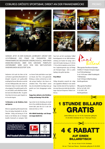 COBURGS GRÖSSTE SPORTSBAR, DIREKT AN DER FRANKENBRÜCKE