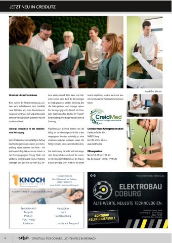 denz weiter sinkend. Zehn Haus- und Fach- ärzte konnten allein durch die Bemühungen der Stadt gewonnen werden. „Ein Erfolg, den alle Coburgerinnen und Coburger spüren. Der Versorgungsgrad im Bereich der Haus- ärzte liegt inzwischen bei fast 99 Prozent“, betont Coburgs Oberbürgermeister Dominik Sauerteig.